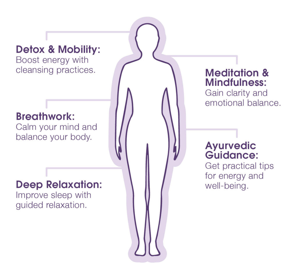 07:30am – 08:00am : Kriyas | Detox & Inner Cleansing08:00am – 08:30am : Breathwork | Calm the Nervous System